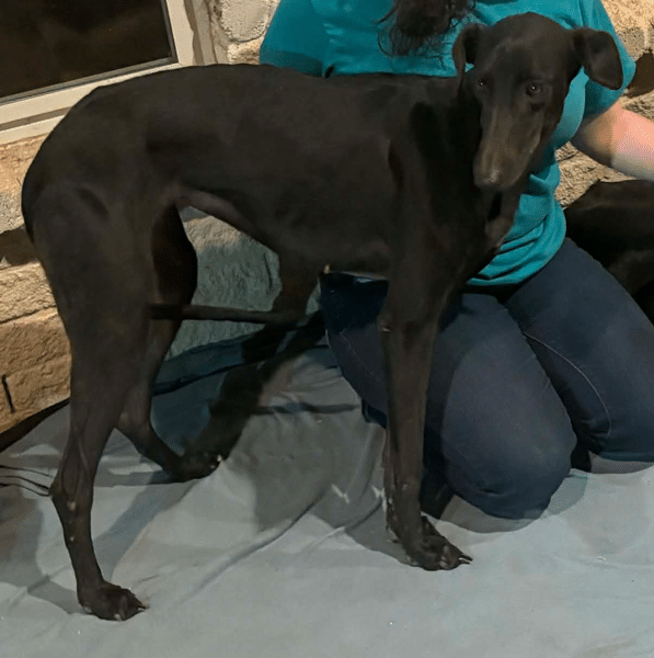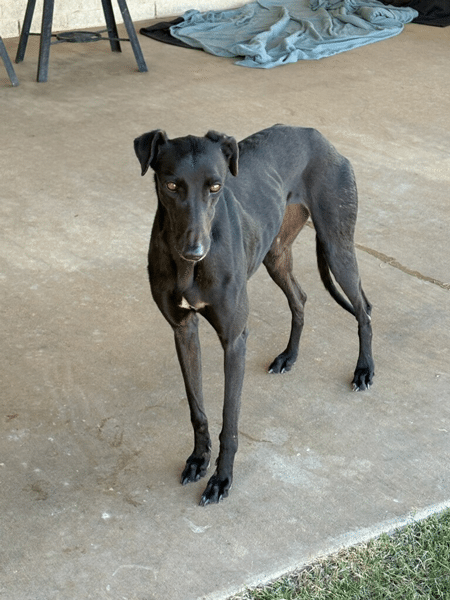 Angela, named for the woman who secured her and another Saluki mix, was found in a field SE of Wichita Falls in early January. They were likely abandoned by a coyote hunter. The Good Samaritan was able to get the girls into her car using her greyhound as a guide. Due to her prey drive, Angela should not live with cats or small dogs.