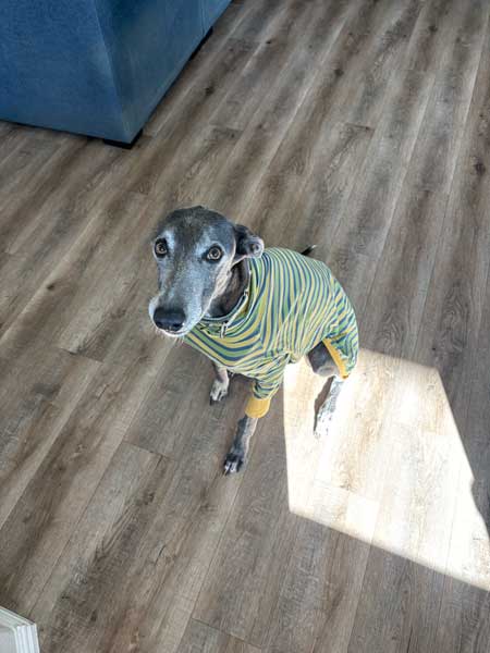 He has lived in a home with cats and other dogs. The adage “let sleeping dogs lie” is extremely important with respect to Apollo. He suffers from sleep startle, so everyone in the house needs to be fully aware of this trait. One must always make sure he raises his lovely head and makes eye contact before approaching his bed.