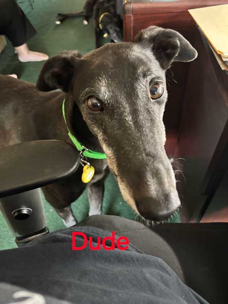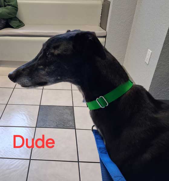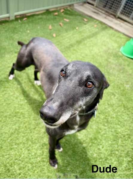 Dude is a sugar-faced black male born October 2, 2020. His sire is Fabregas, and his dam is Tiggerlong Eve. He had 80 races in New South Wales before retiring to wait for a forever home.