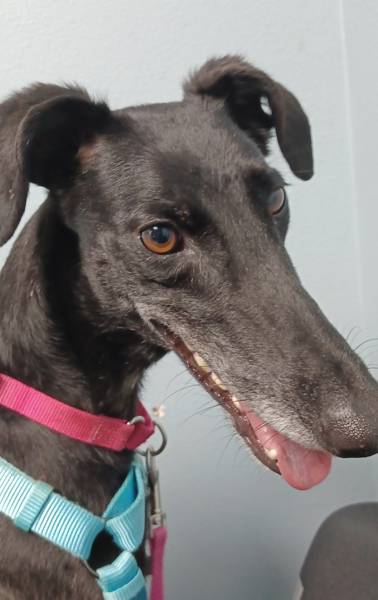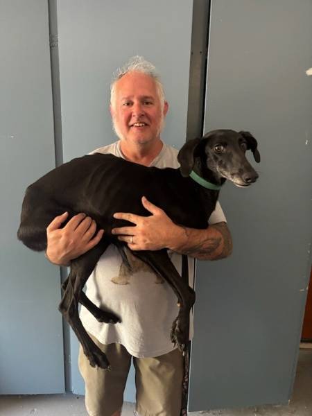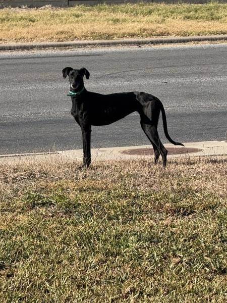 Since late January we’ve been on the trail of an extremely elusive black female greyhound with a green collar in South Texas. She traveled all over the Rio Grande Valley in Brownsville, Harlingen, San Benito area – trekking well over a hundred miles in the last several weeks.
