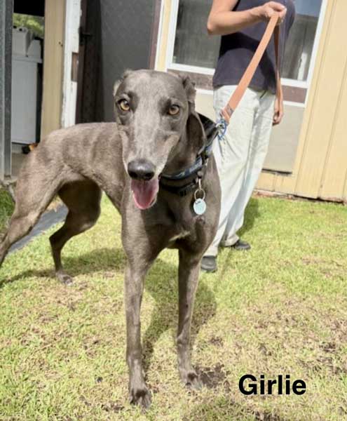 Girlie is a darling blue female born April 11, 2022. Her sire is Barcia Blue Boy and her dam is Zipping Chelse. Sweet girl finished last in three maiden races and decided track life was not for her!