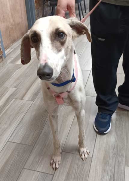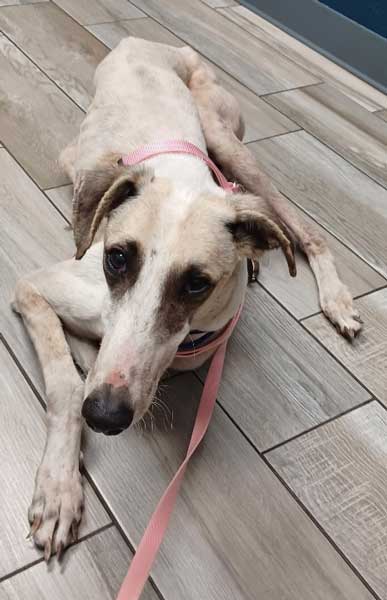 Jasper appears to be a greyhound/Saluki mix born early 2024. We were alerted to a dog chained on abandoned property in Brownsville. One of our volunteers was able to secure him and take him to the vet. Jasper is full of intestinal parasites and is heartworm positive. He will spend time in a foster home while he is undergoing treatment.