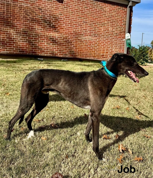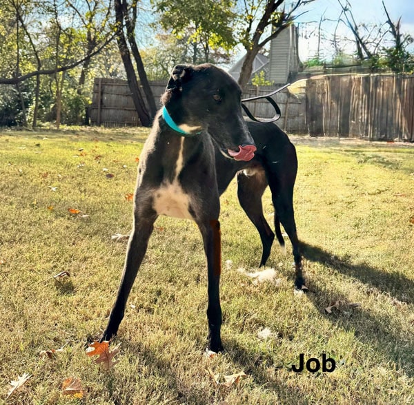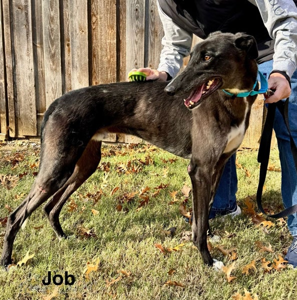 Job is a relaxed, easy-going greyhound with a calm nature and a gentle soul. He walks beautifully on lead, gets along wonderfully with other dogs, and is happy to go with the flow. One of his favorite pastimes? Sunbaking! Job loves to stretch out in the sunshine and soak it all in. He’s also a big fan of pats and attention, making him the perfect chilled-out companion.