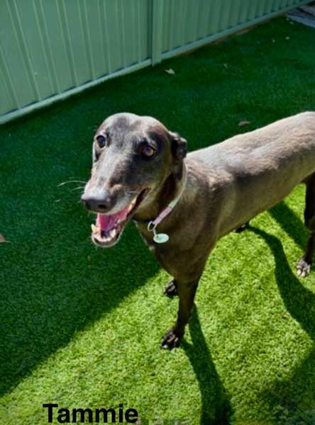 Tammie is a sweet black female born March 17, 2022. Her sire is Flyind Riccciardo and her dam is Kiss Me Nicki. After 25 races in Australia, she is now in search of a forever family to call her own.